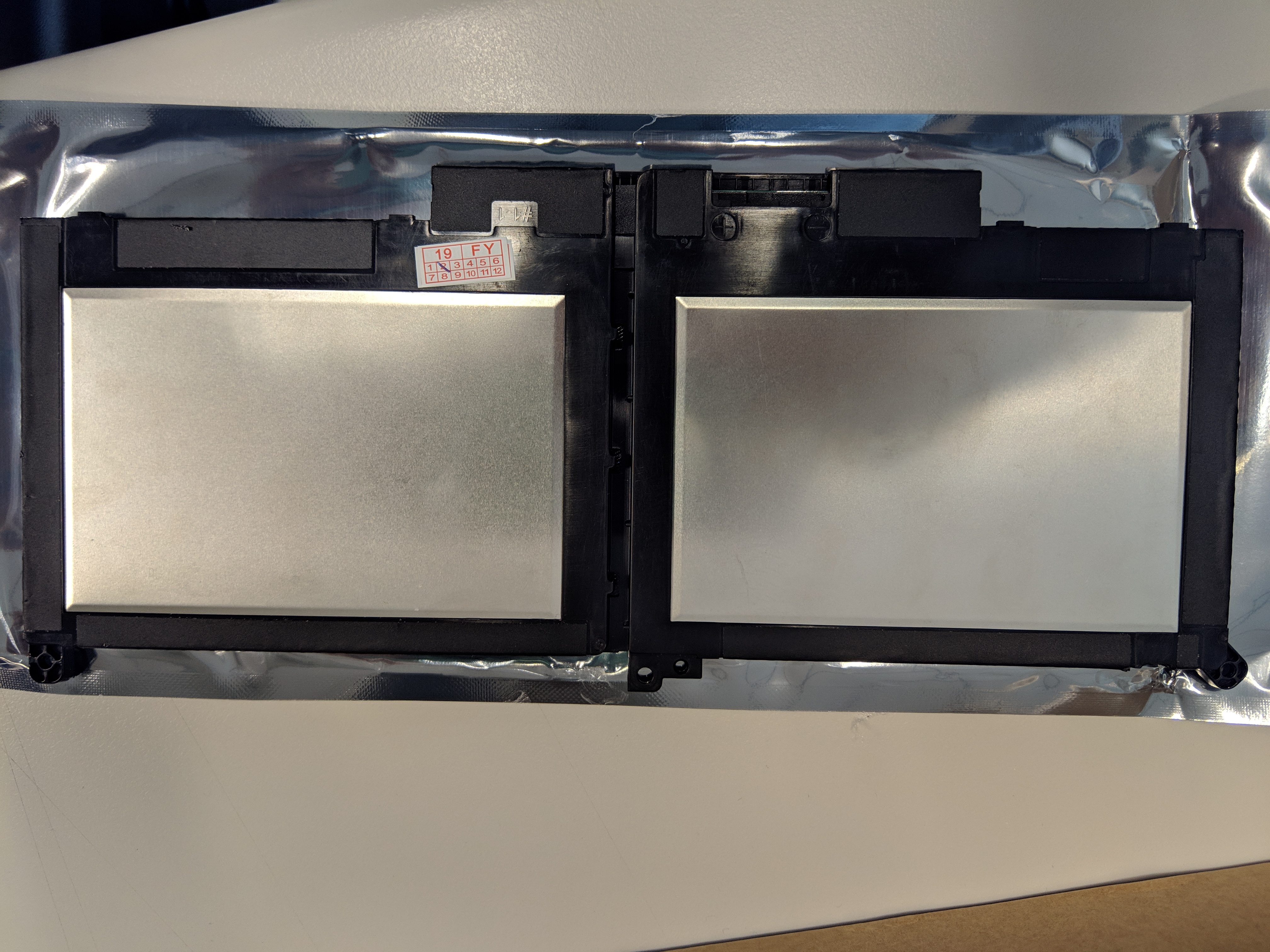 其實東西寄來時我有點吃驚,因為算包的很完整的,紙箱內先有海綿上下包覆,再來還有氣泡帶捲了好幾層,最後才是防靜電袋。從電池上的標示可以看得出來這是 60Wh 的電池,我原本的電池則是 42Wh。可惜的是電池本身的賣相不是很好,不知道是不是因為電池並非賣給一般人的關係,我這顆電池上有個地方出現一點殘膠,上方的黑色護膜也有點像是沒鋪平整的床單。