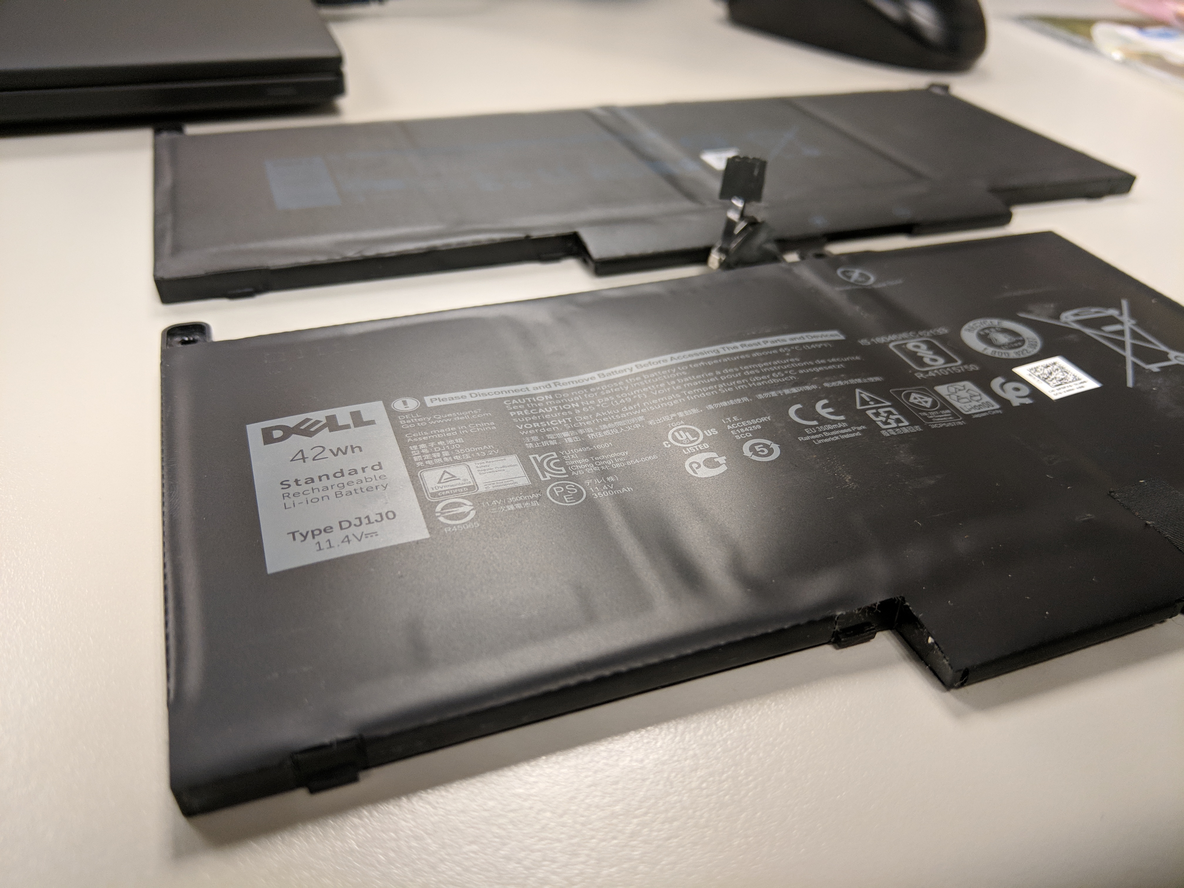 右上圖下方的那個電池就是原本的 3 cell,對比上方的新 4 cell 就可以看出膨脹了一些,也難怪會突然掉電了。
